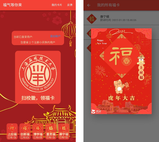 卡片分为“上应福”、“创新福”、“博学福”、“福贵福”和“康宁福”五种。