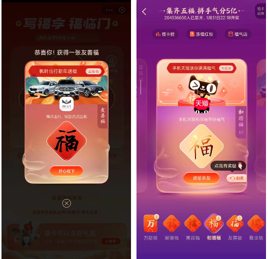 卡片分为“上应福”、“创新福”、“博学福”、“福贵福”和“康宁福”五种。