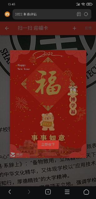 检测到校徽,未抽中福卡,给出友好提示,可以给一些小风筝App相关的使用提示